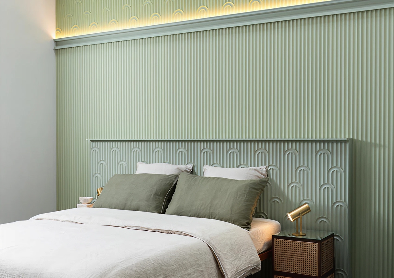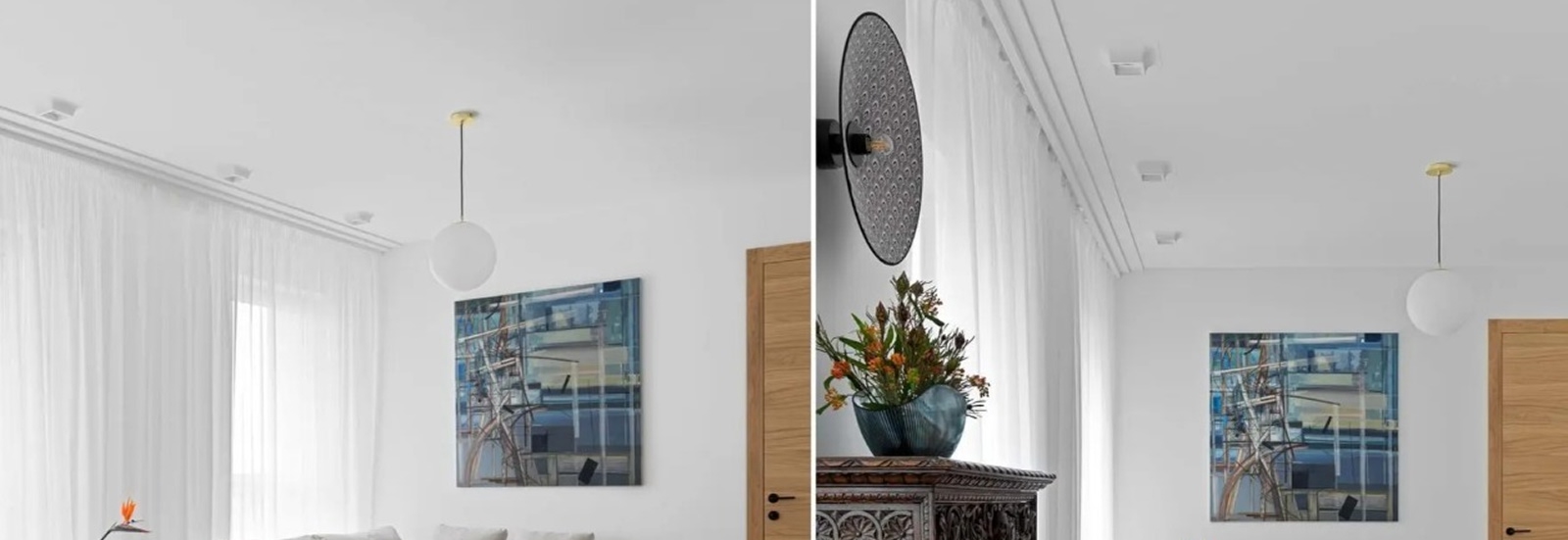 C321 (на фото вверху) плотно прилегает к стене, подчеркивая линию соединения со стенами изящной линией, похожей на тонкий молдинг.
