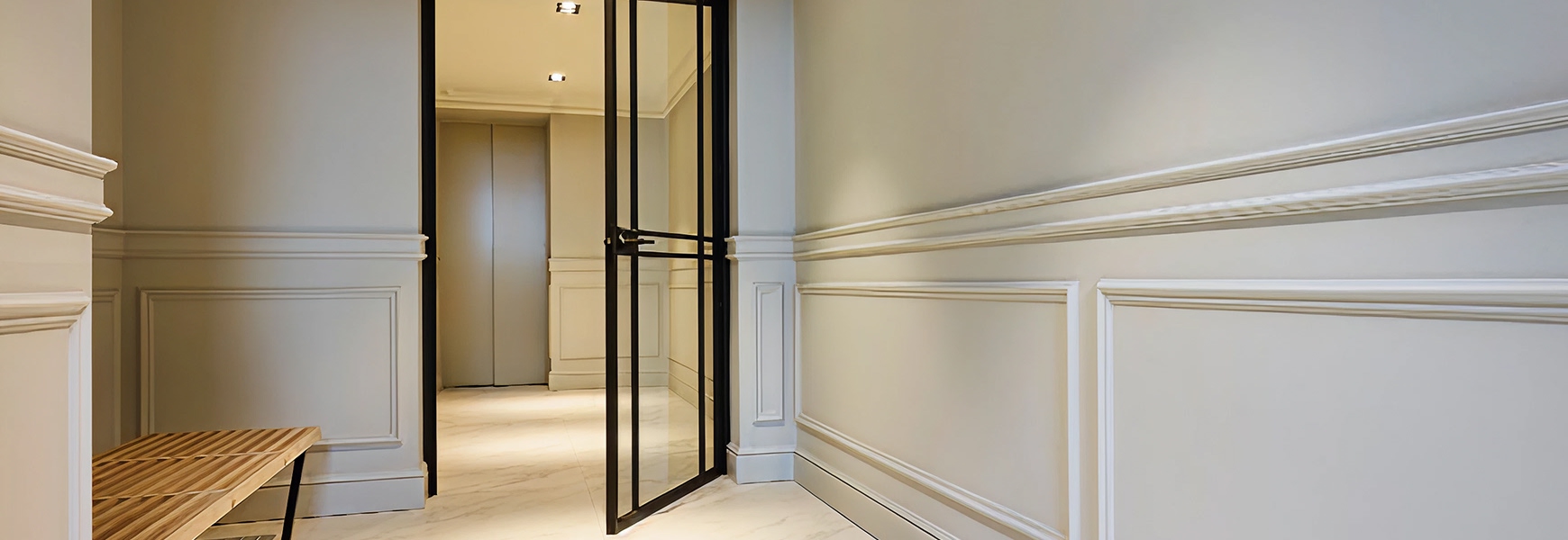 Четкие линии отлично увеличивают высоту помещения и сочетаются с любыми современными пропорциями.